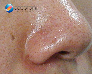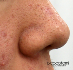 しかし、何らかの原因で毛穴が詰まったり、分泌された皮脂が多すぎたりすると、皮脂が硬化していき、毛穴の中に長時間留まる状態が続きます。皮脂が毛穴から覗いた部分が空気と触れると、酸化して黒く変色していきます。鼻や小鼻の周囲は皮脂の分泌量が多く、黒ずみが起きやすい場所です。