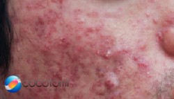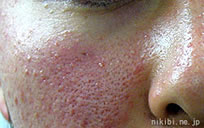 ほかの健康的な肌とニキビの赤みの境目がはっきりせず、時折強いかゆみを伴うことが特徴。