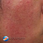 頬を中心に強い赤みがあり、乾燥肌とニキビを併発していました。