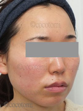 ただ、最初の頃にあった痒みや、ほてりは無くなり、それにともない、赤みが少しずつ落ち着いてきて、ブツブツも出なくなりました。