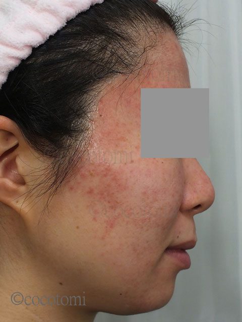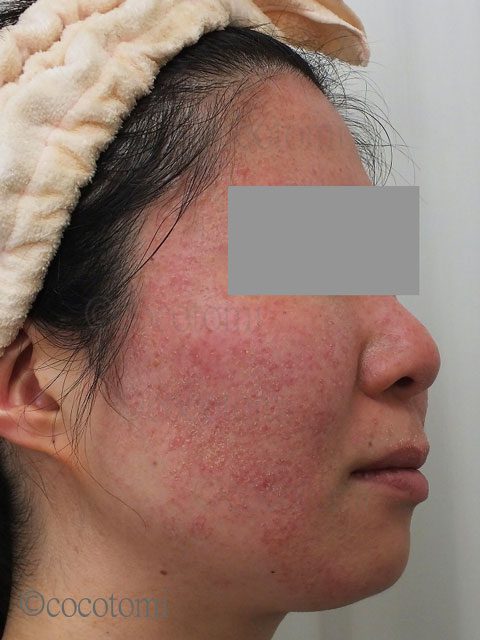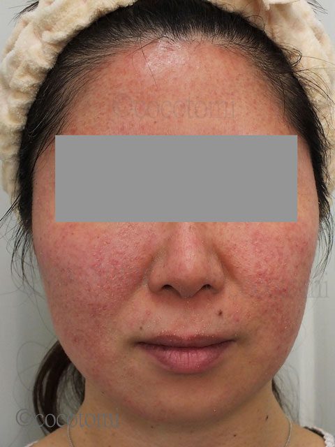 肌あれ→ステロイド使用→ニキビ という経過をたどったため、いつのまにか「酒さ」になっていたのに気つかず、ニキビ対策をしていました。