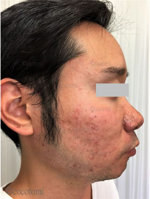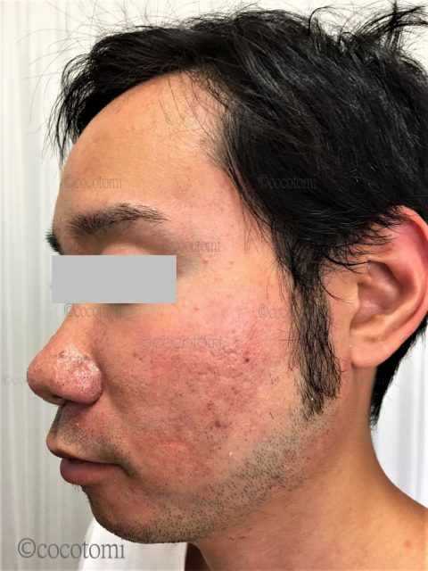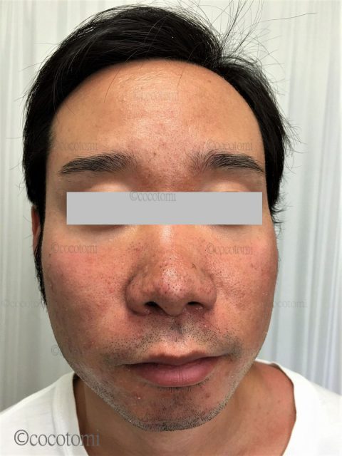 来る前は、頬の赤みが気になっていたのと、見るからに、肌がざらついて凸凹したように見えて悩んでいました。凸凹した部分はまた赤みが強くでてたので、気になってました。