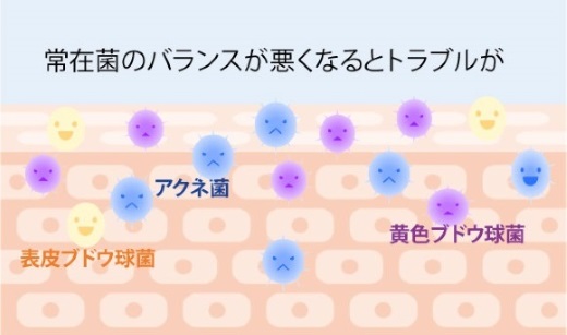 腸内細菌のバランスが崩れると体調も不調になるように、肌の常在菌のバランスが崩れてしまうと、肌トラブルが起きるのです。特に敏感肌の方は、この細菌のバランスが崩れやすい可能性があります