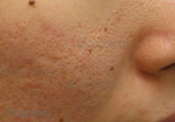 毛穴が楕円形状に広がって見えるのが特徴で加齢や生活習慣の乱れにより、毛穴の角質層にある肌の土台が崩れます。その影響で肌のハリが失われ、肌がたるむことで毛穴が楕円形のように広がっていきます。