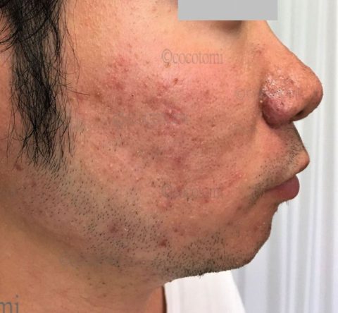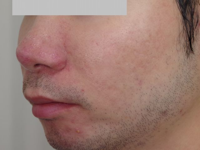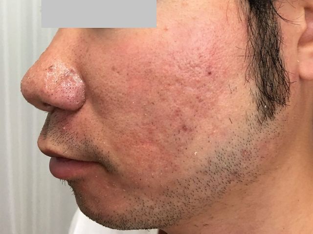 頬や鼻が赤みを帯びていて、触るとザラツキを感じる肌の人に